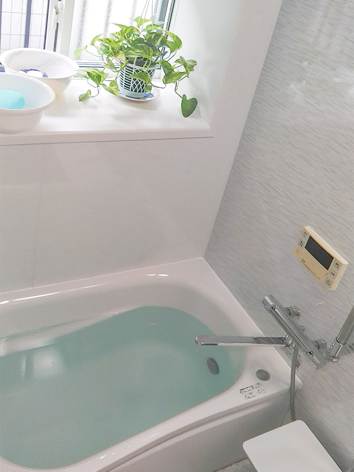 タイル張りの浴室からユニットバスになり、少し狭くなりましたが気持ちよくお風呂に入れました。