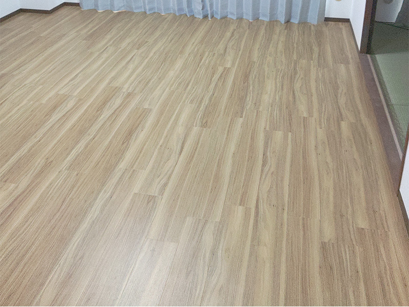 しかし、床の高さが上がってしまうため、ドアなどを調整する必要があり、ご予算や工期を考慮してフロアタイルをチョイスしました。