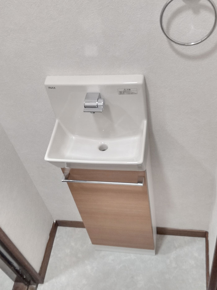 今回の工事はトイレを取り替えて小便器を撤去し、小便器があったところに手洗い器を取り付けました。